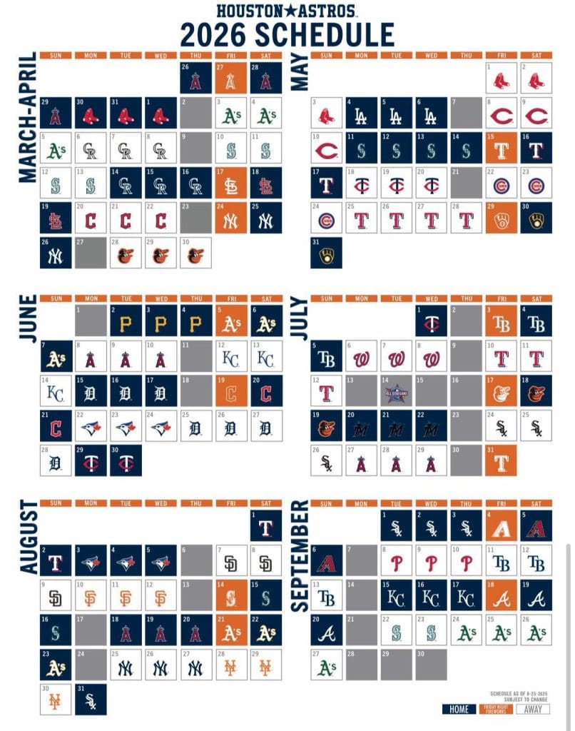 - What is the schedule for the Astros in 2026?