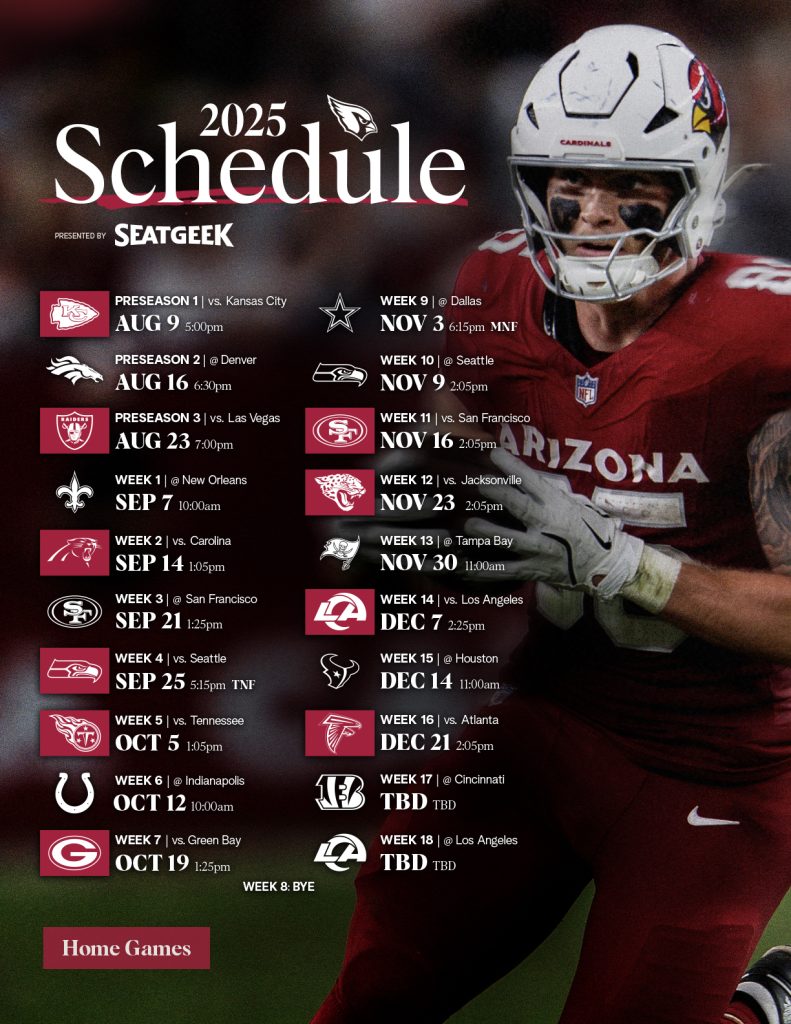 Whether you’re a long-time fan or new to the Cardinals’ fandom, the 2026 schedule offers something for everyone. From home games at State Farm Stadium to challenging away fixtures, each game presents an opportunity for the team to showcase their talent and compete for victory.