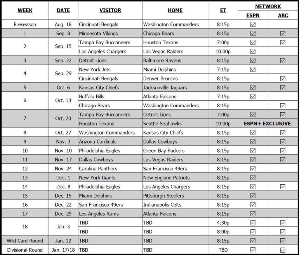 Are you ready to dive into the highly-anticipated Monday Night Football schedule for 2026? Football fanatics and enthusiasts, get your