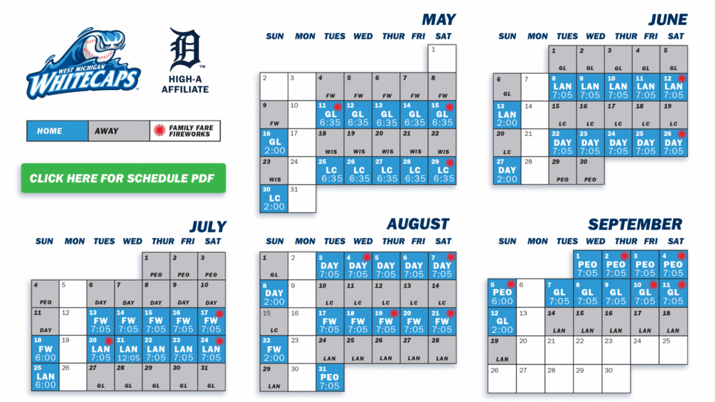 Are you ready for a season filled with thrilling baseball action? The West Michigan Whitecaps have released their highly-anticipated schedule
