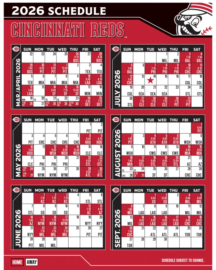 - Once the Cincinnati Reds schedule for 2026 is released, you can find it on the official Cincinnati Reds website, as well as on various sports news websites and platforms.