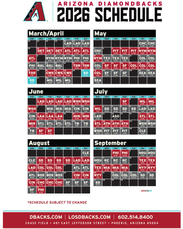 - The Diamondbacks’ schedule for the year 2026 has not been released yet. Stay tuned to their official website or MLB announcements for updates.