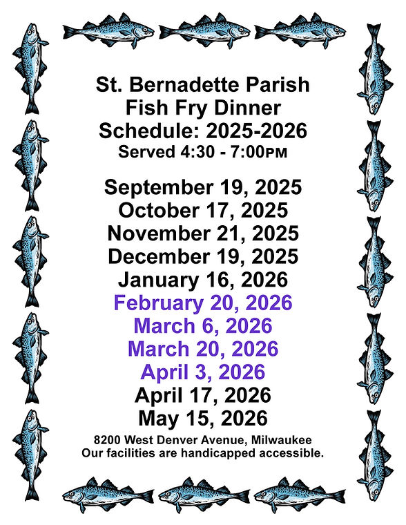 - Enjoy fun-filled games for all ages fish fry 2026 schedule