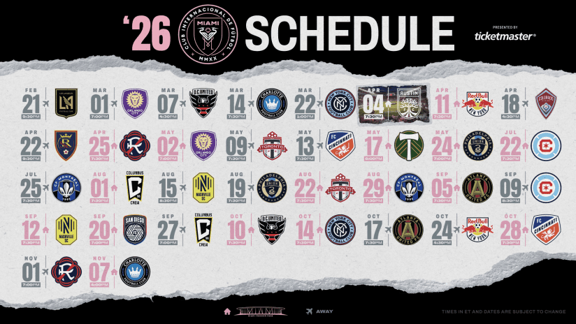 - The 2026 Inter Miami schedule has not been released yet. Stay tuned for updates!
