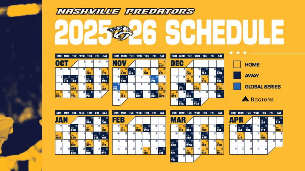 - Once the schedule for the Nashville Predators in 2026 is released, it will be available on the official Nashville Predators website, as well as on NHL’s official website.