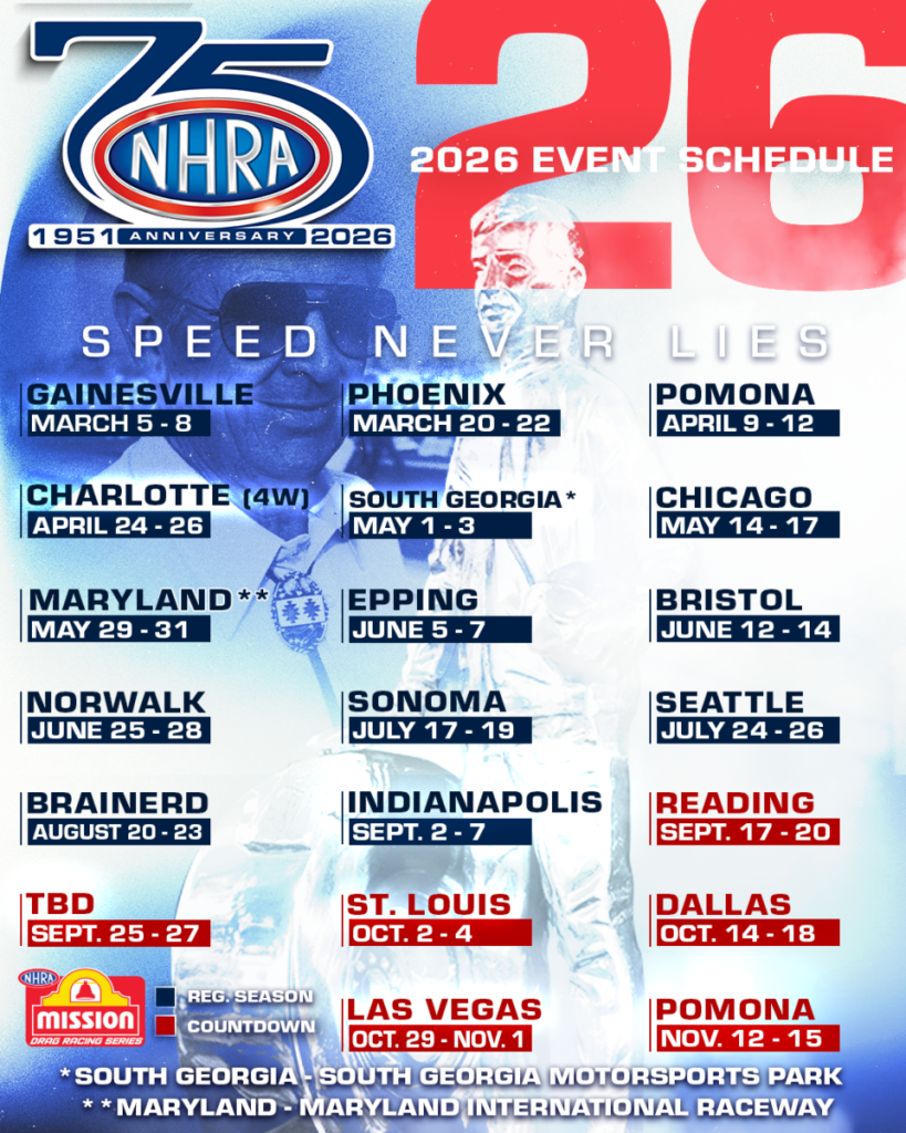 - Will there be any new additions or changes to the NHRA Charlotte 2026 schedule?