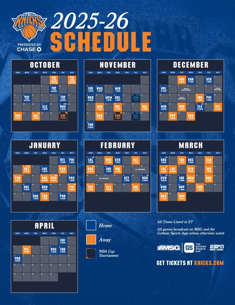 - The complete 2026 NY Knicks playoff schedule will be available on the official NBA website, as well as on the NY Knicks’ official website.