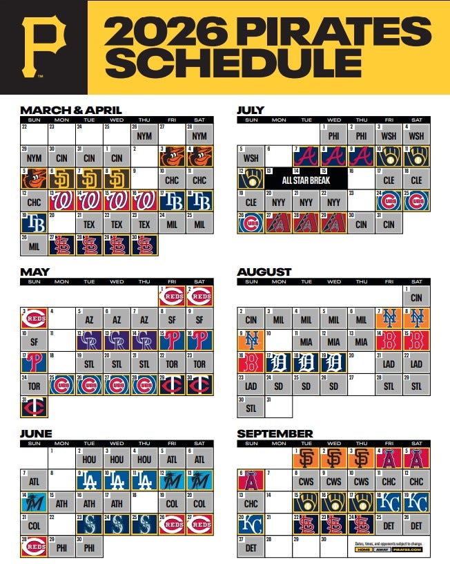 - When will the Pittsburgh Pirates schedule for 2026 be announced?