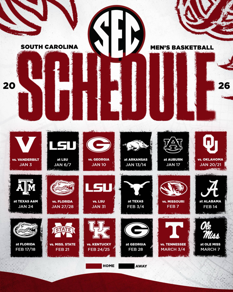 South Carolina’s 2026 schedule includes crucial matchups against top-ranked teams like Alabama and Clemson, making it a season of intense competition.