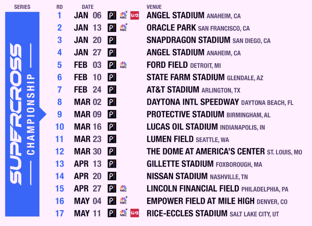 Stay tuned as we unveil the dates, times, and channels for each exciting race, ensuring you never miss a moment of the action. Get your popcorn ready, mark your calendars, and rev up your engines for an unforgettable Supercross season!