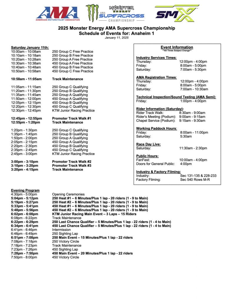 To cater to a wider audience and make the races more accessible to fans across different time zones, the race timings have been adjusted for the SuperCross TV Schedule 2026.