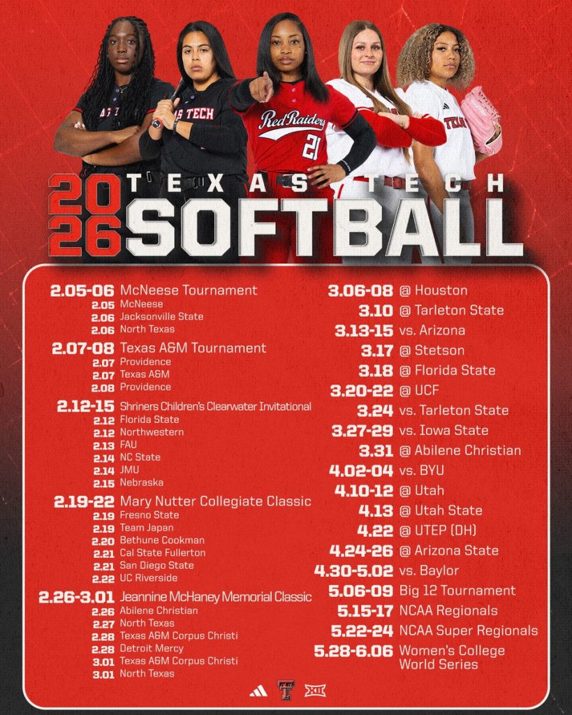 Are you a fan of Texas Tech Softball? Exciting news awaits as the Texas Tech Softball Schedule for 2026 has been released! Get ready to mark your calendars and show your support for the team as they gear up for an action-packed season ahead. With a lineup of thrilling matches and fierce competition on the horizon, followers of the Texas Tech Softball team can look forward to some exhilarating games and unforgettable moments. Stay updated on game dates, locations, and opponents to ensure you don’t miss out on any of the action. Let’s cheer on our Texas Tech softball players as they aim for victory in the upcoming 2026 season!