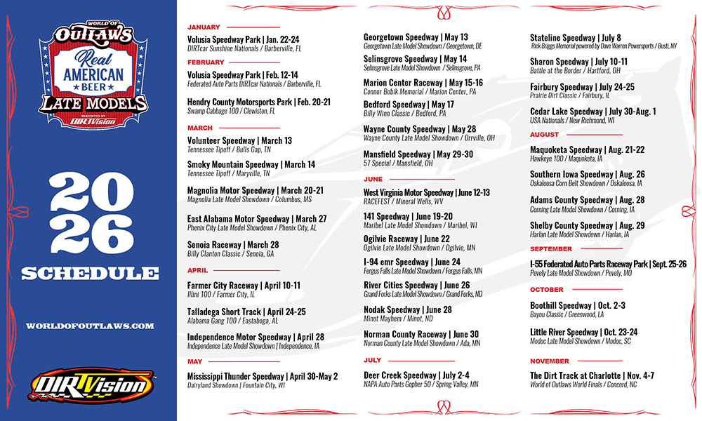 - What is the World of Outlaws Late Models 2026 Schedule?